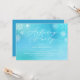 Convite para festas de férias com as palavras "Feriado" em script de moda e flocos de neve contra fundo azul-aquarela na frente e uma cor azul sólida na parte de trás. Personalize este convite com seus detalhes substituindo o texto do marcador de posição. Para obter mais opções, como alterar a fonte, o tamanho/cor do texto ou o espaçamento entre letras, clique no botão "Personalizar". *Observe que a Marca d'água do Zazzle que aparece na visualização de zoom NÃO aparecerá no produto impresso final. © Rosewood e Citrus