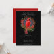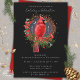 Convite para Festa de Férias do Cardeal Vermelho Natal, com fundo preto e costas vermelhas. Tornar esta temporada de festas extra especial com esta bela design de aquarela que apresenta um pássaro cardeal vermelho contra um céu escuro com lua crescente e estrelas douradas, coroa vermelha, groselhas vermelhas, cones de pínus, verde, velas de yule com uma chama de ouro e acabadas com um arco vermelho Quer estejamos celebrando o Natal, Yule, ou o Solstício do Inverno, esta carta é perfeita para pagãos e qualquer um que ama estação de inverno! Texto pronto para personalizar com suas informações.