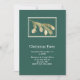 Convite de festas de Natal feito em verde Kelly, com gráficos de um galho de pinheiro dourado com cones de pínus. Personalize os campos de texto de cor branca para atender às suas necessidades de feriado.