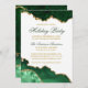 Cartão de Convite para o Partido de Feriado de Geodo de Gato de Marble Agate Elegante Moderno Elegante Emerald Green e Dourado - Fundo Branco com Script Dourado