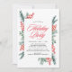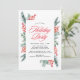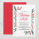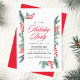 Convide os convidados para a sua festa de férias com estilo com nossos belos convites de festa Holly e Evergreen. "Festa de Férias" é exibido em uma elegante fonte de caligrafia vermelha com os detalhes da sua festa apresentados abaixo. Os detalhes da sua festa de férias são emoldurados por folhas de azevinho pintadas em aquarela vermelha com galhos de pinheiro e folhagens verdes. O convite de festa de férias botânico reverte para um fundo vermelho sólido.