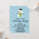 Celebre o feriado com este bonitinho bonitinho, festivo boneco de neve com um cachecol verde e um convite para festas de chapéu preto. Os detalhes da festa são escritos em uma tipografia branca e esbranquiçada com um fundo azul claro com flocos de neve brancos em queda. Este convite é perfeito para uma festa de Natal/ Natal/ inverno!