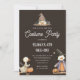 Convite de festas de aniversário de criança temático do Halloween com ganso fofo em figurinos do halloween armando uma fonte de script na moda e uma fonte sans serif na qual todas as suas informações personalizadas são escritas. Veja na nossa loja mais itens desta coleção.