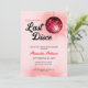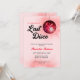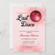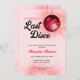 Este convite para festas de solteira mostra um tema de disco retrô vermelho com uma bola de disco e o texto do estilo de 1970. Este convite é perfeito para um fim de semana de despedida de solteira e oferece texto personalizado na parte de trás para o seu itinerário.
