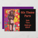 Um legal convite de festas temático com tema dos anos 60/70 com uma criança de flores contra um fundo brilhante e colorido. Perfeito para a sua próxima festa temática ou reunião de festas com estilo psíquico. A cor do texto e do plano de fundo é totalmente personalizável.