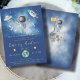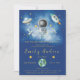 Celebre a chegada da sua pequena estrela com este convite de chá de fraldas mágico do espaço exterior. Possui espaço imaginário Astronauta Terra, foguetes e estrelas atiradoras em azul-marinho e de dourado.
