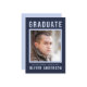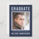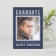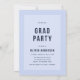 Anúncio de graduação azul e convite de festas formando. O convite tem um lado azul claro nas costas. Personalize-o substituindo o texto do marcador de posição e substitua a foto do marcador de amostra/marcador de posição por sua própria foto. Para obter mais opções, como alterar a fonte e seu tamanho/cor ou o espaçamento entre letras, clique no botão "Personalizar". *Observe que a Marca d'água do Zazzle que aparece na visualização de zoom NÃO aparecerá no produto impresso final. © Rosewood e Citrus