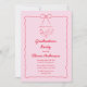 Celebre em estilo com nosso Convite de festas de Formando de Foto Rosa Vermelho Desenhado à Mão. Apresentando um fundo de rosa claro suave e texto vermelho quente em uma fonte charmosa de escrita manual, este design é divertido e elegante. O arco desenhado à mão e os sotaques rabugentos adicionam um toque caprichoso, enquanto a foto personalizada a torna única e exclusivamente sua. Perfeito para uma comemoração de chic e vibrante!