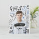 Fique de pé e anuncie a festa de comemoração do seu formando com este design de convite para a formatura exclusivo. O convite para o formando parece um cobrir de fotos da revista hip e divertida. O design incorpora um espaço reservado para imagem de recursos de grandes revistas para sua própria foto de formando. O cabeçalho da revista "O Formando" cria o nome da revista. O cabeçote de máscara pode ser alterado para qualquer cor para que você possa escolher uma cor que funcione para sua foto. (simplesmente clique em personalizar ainda mais para acessar as camadas) Os ícones de rabisco de na moda divertido são adicionados em torno da foto de formando, criando uma aparência divertida e exclusiva. Observe que os ícones de rabisco podem ser mudados para qualquer cor que você quiser e podem ser movidos para se adequarem à sua foto. O reverso desta revista inspirou o design de convite para se parecer com uma página de uma revista, com os detalhes do convite de festas de formando desenhados no estilo da revista com aspas de puxar e outros elementos, assim como uma segunda imagem de marcador para sua foto adicional. Você pode personalizar o tamanho do texto, a cor do texto, a fonte e o layout para a sua própria preferência de design pessoal. Trabalho de arte desenhado pela Moodthology.