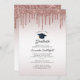 Com um moderno gotejamento de brilho rosa dourado, este convite festa de formatura com fundo branco e rosa-ouro ombre é perfeito para o seu partido especial.