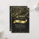 Um Convite À Festa de formatura Extravagante Preto E Dourado Esparso Com Fitas Douradas, Banner, Tipografia Dourada Brilhante E Personalização De Fotografias.