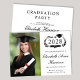 Anúncio e convite de festas modernos de formandos com "Classe de" dentro de uma coroa de louros, um boné de formando e um diploma, uma foto do formando e seu nome em uma escrita elegante. Adicione sua escola, major, honras ou planos futuros. No verso, adicione os detalhes da parte.