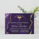 Convite à Festa de formatura de Gatos de Águas Douradas e Púrpuras de Aquarelas Elegantes Modernas e Convite à de Gatos de Marble - Faculdade de Medicina, Enfermagem e outros Estudos de Medicina. Script de caligrafia de tendências. Dourado símbolo médico. Excelente para enfermeiro, médico ou outro formando de estudante de medicina.