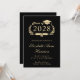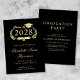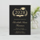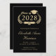 Convite de festas preto moderno com "Classe de" numa ilustração dourada clara de uma coroa de louro com um formando superior e um diploma e o nome do formando numa elegante escrita dourada clara. Adicione sua escola, sua maior, honras ou planos futuros e os detalhes da festa de formatura em uma simples tipografia de ouro leve.