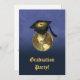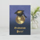 Convite para comemoração de formatura. Boné de formatura com rosa de bússola em ouro pelo globo. Substitua o texto do espaço reservado por suas informações. Você pode mudar a fonte, o tamanho, a cor. É a vez deles mudarem o mundo. Adicione e exclua conforme necessário.