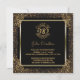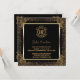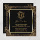 A Elegante Classe de Ouro de 2018 convida com efeito de sotaque dourado - Deslocadores de aspecto metálico de ouro falso-chic enrolam os cantos contra um fundo preto de carvão com estrutura quadrada de aparência de metal dourado falso com aspecto de borda dourada. Um círculo decorativo de efeito metálico de cor dourada está no topo. Lê a classe de em letras de ouro curvas acima do círculo com um dentro de cor dourada correspondente. O formando é impresso no texto curvo abaixo. O nome do formando no script e outros detalhes de festa de formatura abaixo em letras hued douradas, incluindo informações de RSVP. O ano de classe pode ser personalizado, assim como cores e estilos de texto. A parte de trás tem pergaminhos de ouro nos cantos contra um fundo preto sólido. Perfeito para cores de escola de preto e ouro. Elegante o suficiente para formandos. Trabalha para o Excelente Gatspelo partido também.