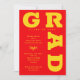 FORMANDO nas curvas em negrito amarelo de letras douradas ao redor das bordas desses convites de festa de formatura vermelha de fundo.CONSULTE A COLEÇÃO INTEIRA de combinações de cores pré-feitas, placas de papel, guardanapos, caixas de favor e convites de festa de formatura em nossa loja.