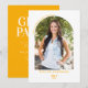 Deixe sua família e amigos participar da celebração da graduação com este Convite para Festas de formatura Amarelo do Ouro Foto de Arch Moderno. Simples mas sofisticado com texto amarelo vibrante na frente e sólido nas costas com texto branco torna este convite leve, arejado e divertido. A foto do formando na frente, em forma de arco moderno, com texto elegante e curvado acenando para a família e para os amigos 'O Vamos celebra o Formando' enquanto o verso detalha a festa. O tipo retrorreflector elegante é acentuado com a caligrafia moderna para a tipografia "Classe de" para interesse visual com uma reviravolta moderna.