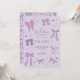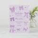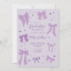 Cartões de convite para festa de formatura com tema de arco roxo coquete com ilustração de fitas e corações.
