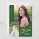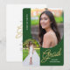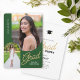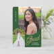 Convide amigos e familiares para a sua "Festa de Formatura" com o convite moderno, 2 fotos, verde e dourado. O design apresenta fotos com borda arqueada. Texto personalizado, no verso, permite que você personalize com os detalhes da sua festa.