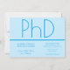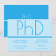 Um convite para uma festa de formatura de doutorado. Este convite minimalista é azul claro e escuro. Todas as palavras e ambas as cores podem ser personalizadas.
