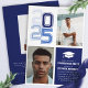 Celebre seu formando de estilo com este convite moderno de temas variados. Apresentando uma ousada inscrição "2025", uma elegante paleta de cores azul e branca e marinho para fotos pessoais, este design capta perfeitamente o espírito da ocasião. Ideal para segundos graus ou formandos, combina sofisticação com um talento esportivo. Personalize-o com seus detalhes para uma celebração memorável.