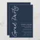 Este é um convite minimalista e moderno à festa de formatura. É um design de script simples e na moda em azul e branco clássico. Entre em contato com o designer para obter informações sobre este design.