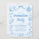 Convites Festa de Formatura Azul Desenhada à Mão Caprichosa