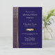 Marinho azul moderno e convite de festa de formatura estriada com divisa dourada.