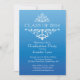 O belo rico de vintage alimenta um convite de festa de formatura com um floreio de folha decorativa branco, em um fundo azul moderno para a sua classe de 2014, 2015, formando. Todo o texto pode ser personalizado com suas informações de festa de formatura. Disponível em nosso compro para um formando de menino ou formando de menina em uma grande variedade de segundos graus populares e cores universitárias.