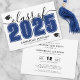 Este anúncio clássico, porém moderno, de graduação horizontal duplica como convite de festas. A frente apresenta uma "Classe de 2025" sobredimensionada em negrito e branco, com o ano em azul marinho, complementado por sotaques de cinza elegantes. Dois ícones de boné de formatura acrescentam um toque comemorativo, com espaço abaixo para o nome do formando e a escola. As cores podem ser personalizadas para corresponder às cores da escola para uma aparência personalizada. A parte traseira se transforma em um convite de festas, apresentando um layout de na moda com espaço para detalhes do evento, como data, hora, local e informações de RSVP. Uma mistura de tipografia limpa e roteiro elegante cria uma sensação sofisticada mas festiva, perfeita para celebrar esse marco com a família e os amigos. Totalmente personalizável para se adequar ao seu estilo!