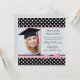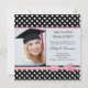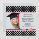 Convite para fotografia de Festa de formatura de bolinhas branca e preta. Para redimensionar e posicionar sua foto, clique no botão "PERSONALIZAR TI". Você pode ajustar o texto de acordo com suas necessidades - alterar a fonte, a cor ou o tamanho.