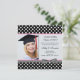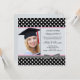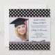 Convite para fotografia de Festa de formatura de bolinhas branca e preta. Para redimensionar e posicionar sua foto, clique no botão "PERSONALIZAR TI". Você pode ajustar o texto de acordo com suas necessidades - alterar a fonte, a cor ou o tamanho.