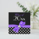 Um convite de festa de formatura pré-pago com um coração de diamante e uma ilustração de arco de fita roxa, acentuando um padrão de bolinhas preto e branco. Perfeito para um convite à formatura de segundo grau, convite para formandos, convite para festa de formatura e muito mais. Anúncios de graduação baratos que impressionarão com qualidade. Garota e bonitinha. Personalize facilmente os detalhes de sua festa! Designs são ilustrações/gráficos impressos - NÃO EMBELÉCIES REAIS.