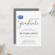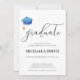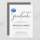 Convite para a graduação de segundos graus moderno e simples com ilustração de um boné de formatura azul e tipografia elegante. Ilustrada e projetada por Patricia Alvarez.