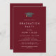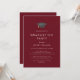 Este convite de festa de formatura boné vermelho-chic é perfeito para uma festa moderna ao ar livre. O simples design apresenta uma tipografia clássica, vermelha e branca, de burlagem escura, com um chapéu de graduação em cor d'água preto e dourado.