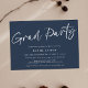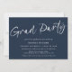 Este é um convite minimalista e simples de festa de formatura. Ele usa um design de script clássico, porém moderno e na moda, em azul escuro clássico e branco. Entre em contato com o designer para obter informações sobre este design.