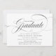 Convites de festas de formatura elegantes com "Formando" em um roteiro preto de caligrafia moderna. Personalize os convites de festa de formatura preto e branco adicionando o nome do formando, o ano de graduação, o nome da escola e os detalhes da festa de formatura. A festa de formatura da moda convida ao contrário para exibir um padrão de treliças brancas com um fundo preto.