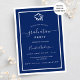 Um moderno, elegante e convite. Um fundo azul marinho decorado com quadros brancos e um boné branco. Personalize e adicione um nome e detalhes da parte. Texto branco.