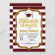 Convite à festa de formatura com o Maroon White Stripes Elegante design simples e moderno com falso brilho dourado e letra de script. Perfeito para uma festa elegante.
