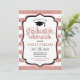 Convite de festa de formatura com Rosa Dourado White Stripes Elegante design simples moderno com faux glitter rosa gold e script font. Perfeito para uma festa elegante.