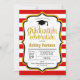 Convite à festa de formatura com faixas brancas vermelhas design simples elegante e moderno com letra falsa de ouro brilhante e script. Perfeito para uma festa elegante.