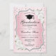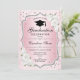 Convite para festa de formatura. Possui fonte de script de cor damasco, rosas brancas, tassel e confetti. Design cor-de-rosa elegante com prata brilhante falso. Perfeito para uma comemoração de na moda.