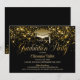 Este convite de festa de formatura moderno em preto com brilho dourado apresenta uma área de texto personalizável que permite incluir facilmente todos os detalhes necessários para a sua celebração, incluindo data, hora, local e informações de RSVP. Uma variedade de tipos de papel e estilos de canto estão disponíveis para seus convites únicos, juntamente com a opção de download.