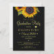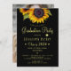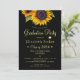 Modelo de convite para festa de formatura de na moda FOTO estilo russo em um fundo preto sólido (cor alterável) com buquê amarelo de girassóis dourados. Fácil de personalizar com o nome do formando, a escola, a classe do ano e os detalhes da festa.+++++++++ O convite é adequado para festas de formatura de países rústicos do quintal de jardim externo.++++++ Se você precisar de mudanças no design, entre em contato com o designer através do botão MENSAGE abaixo!