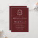 Este design de convite clássico e elegante para festa de formatura de apresenta um monograma branco inicial em letra serif aberta rodeada por uma crista de acanthus de uma crista vermelha de burgundy. Personalize o texto com o nome do formando e os detalhes da parte. A parte de trás do cartão é uma arma sólida. Ideal para segundo grau, faculdade ou formando universitário.