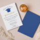 Anuncie sua festa de formatura e comemore suas cores escolares com este convite azul. Este convite apresenta um boné azul com letras douradas. Personalize o texto para compartilhar todos os detalhes de sua festa de formatura.