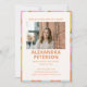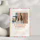 Este convite de festa de formatura apresenta uma borda geométrica ousada e inspirada no estilo retrô em coral, rosa, mostarda, sage e azul claro, cercando uma janela de foto centralizada e uma tipografia de nome sem serifa em negrito. O design colorido no estilo dos anos 70 traz uma energia divertida e comemorativa que parece fresca e cheia de personalidade. Um ótimo ajuste para o graduado que deseja algo vibrante e cheio de alegria para marcar a ocasião. Todo o texto e foto são totalmente editáveis para personalizar com o nome do graduado, escola, ano de formatura, data e detalhes do evento.