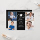 Um convite de festa de formatura elegante com quatro fotos especiais e tipografia estilosa em um fundo preto. Criado por Thisisnotme©