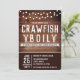 Este design marrom rústico apresenta um fundo de madeira rústica com luzes de corda e gráficos de lagostim. Este convite é ótimo para formaturas, mas o texto também pode ser personalizado para aniversários, casamentos, reuniões de família e qualquer outra festa que você possa ter um boil de lagostim, caranguejo ou lagosta. Aproveite seu boil de frutos do mar!